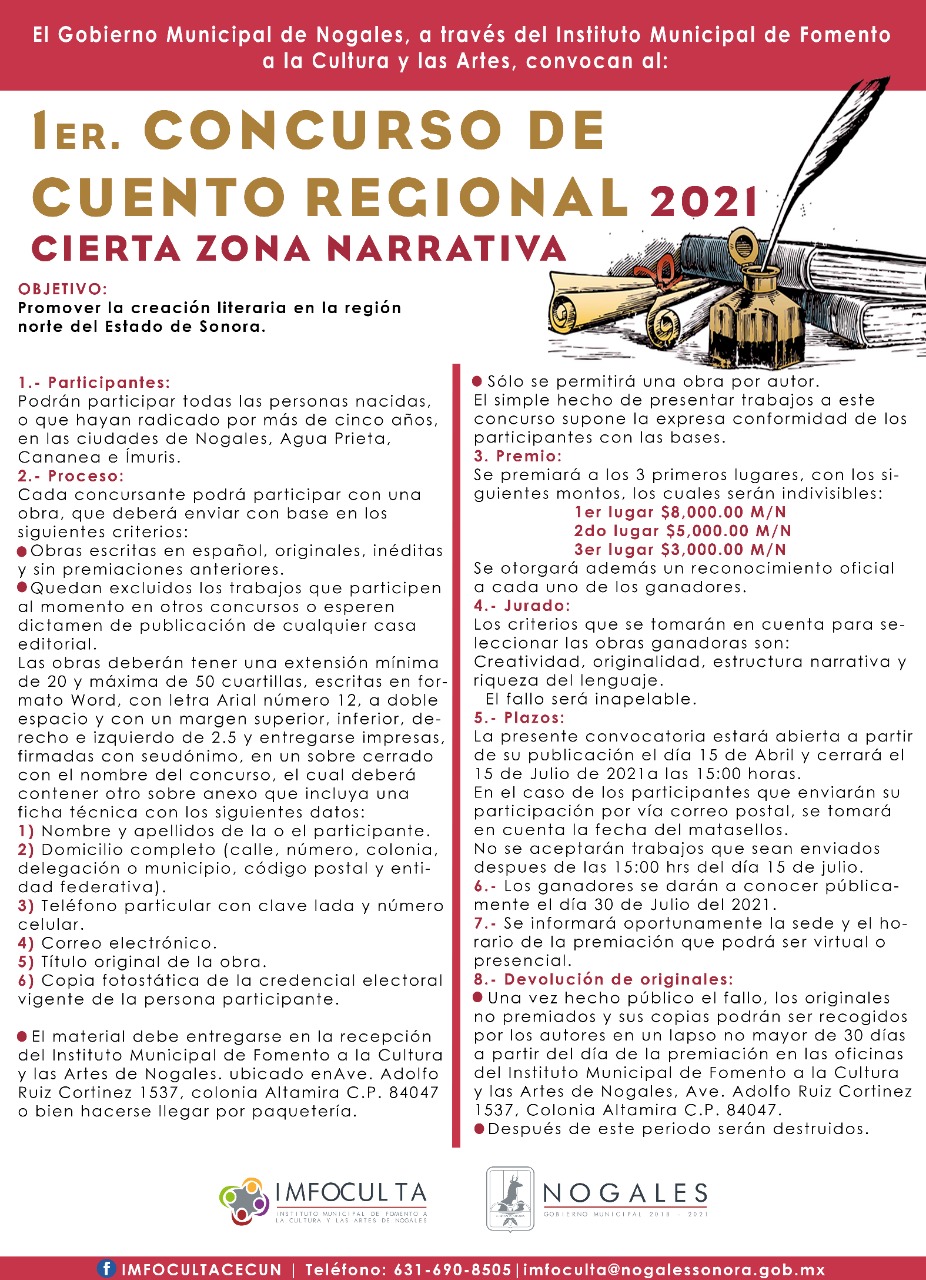 SE ABRE EL PRIMER CONCURSO DE CREACIÓN LITERARIA REGIONAL “CIERTA ZONA...